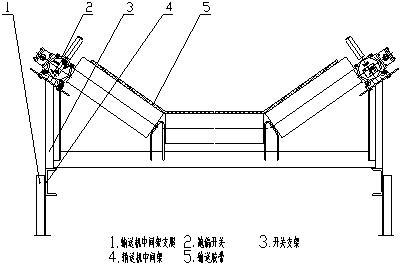 跑偏開關(guān)的安裝應(yīng)使立輥與膠帶側(cè)面平面相垂直,立輥與膠帶邊緣距離為50~100㎜之間。膠帶邊緣平面位于立輥1/3處為宜。跑偏開關(guān)應(yīng)成對的安裝在帶式輸送機的兩側(cè)。每隔30米~40米安裝一對。用戶在購買跑偏開關(guān)時,同時應(yīng)向我公司訂購安裝支架,將安裝支架焊接在帶式輸送機中間架上,然后用螺栓將開關(guān)緊固在安裝支架上即可。參見圖二安裝示意。