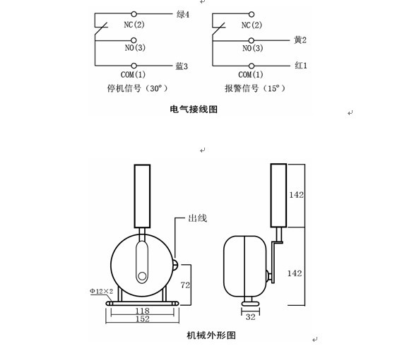 4、跑偏開關出廠時配有長度0.5米四芯橡套電纜,芯線上配有1、2、3、4線號,其中1、2為常開接點是一級報警信號,3、4為常閉接點是二級停機信號。